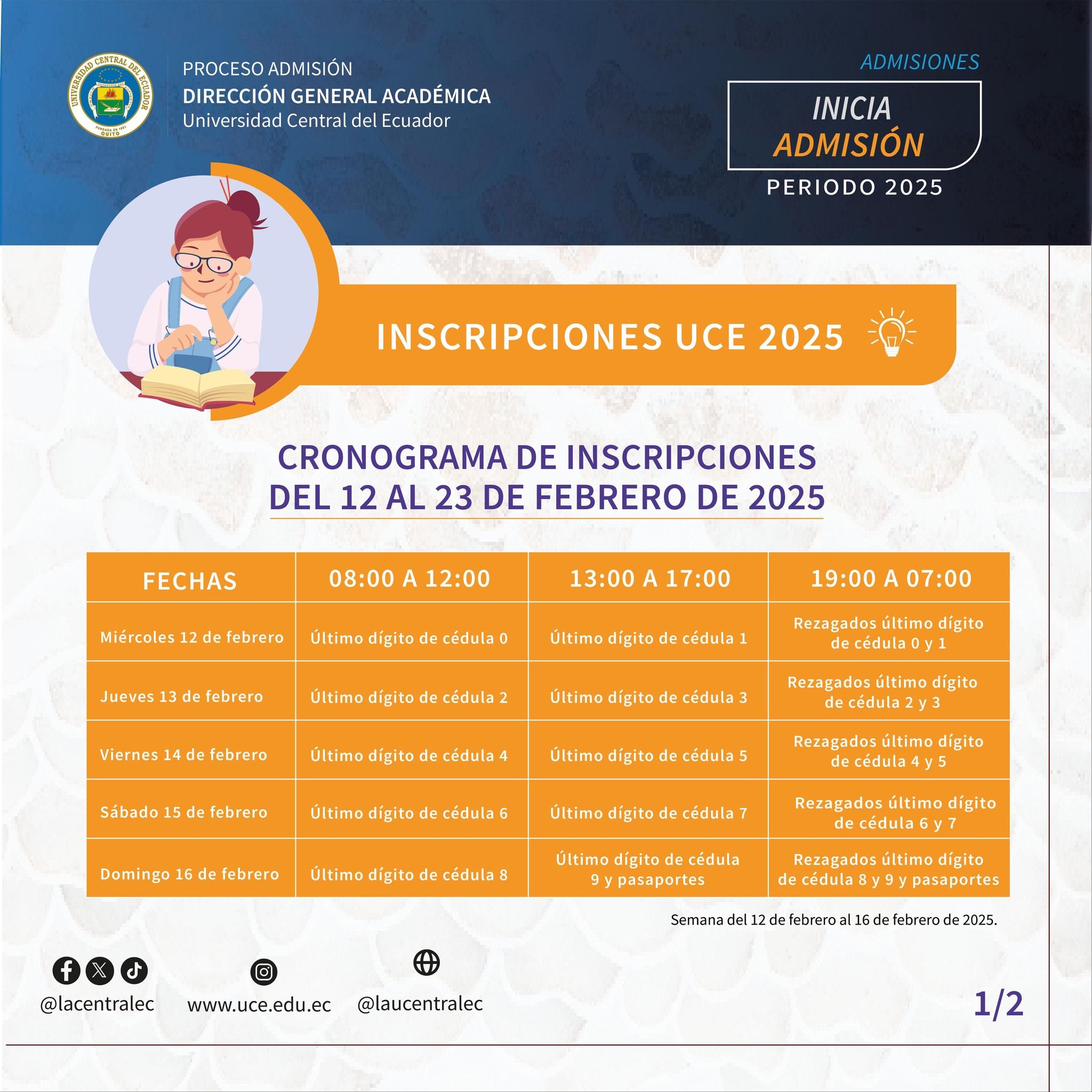 Debes seguir el cronograma oficial publicado por la UCE
